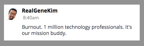 A few years ago I joined team Gene Kim (a wonderful friend). Gene has this vision of improving the lives of millions of IT professionals and he has been doing incredible job starting with his novel “The Phoenix Project.” Gene is a leader in this industry and in fact I reached out to Gene just the other night to tell him about Carlo’s passing and sent him this picture.