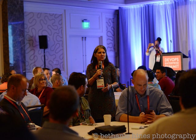 One DOES program committee member in particular is responsible for leading the initiative to implement DevOps workshops at the DevOps Enterprise Summit. Dominica DeGrandis, Executive Consultant at LeanKit, has seen meetings like Lean Coffee and the DevOpsDays’ Open Spaces, gain in popularity as an alternative to traditional meeting styles. In Lean Coffee meetings held within an organization, the agenda follows topics that are top of mind for the majority of people attending the meeting, which often results in increased engagement and productivity.
